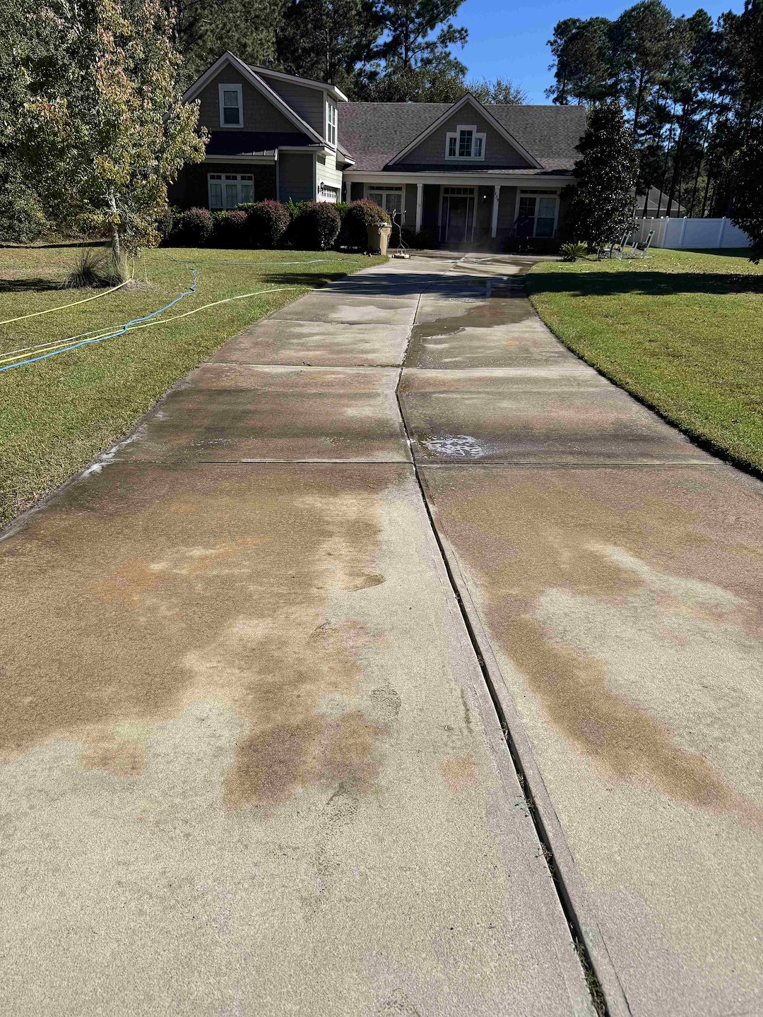 Blue Line Pressure Washing, known as the best Savannah pressure washing company, recently completed another successful concrete cleaning project in Guyton, GA. This job focused on restoring worn and discolored concrete surfaces that had built up dirt, algae, mildew, and surface stains over time. Using professional-grade pressure washing equipment and proven concrete cleaning techniques, our team was able to lift deep-set grime and reveal a much brighter, cleaner surface. The transformation was immediate and significantly improved the property’s overall appearance. The Guyton homeowner was extremely happy with the final results and appreciated the noticeable boost in curb appeal that came from having their concrete professionally cleaned.